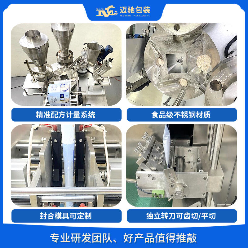 邁馳是一家專業生產全自動三合一精準配方顆粒粉末包裝機廠家,可根據客戶不同物料特性定制一對一方案,為您解決包裝精度問題。整廠方案設計,支持非標定制。26年包裝行業經驗,助力生產企業穩定生產,提高產能。